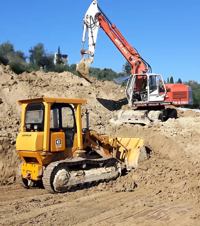 Αναλαμβάνουμε εκσκαφές, εκβραχισμούς, διαμορφώσεις χώρων, κατεδαφίσεις και χωματουργικά έργα κάθε κλίμακας.